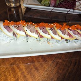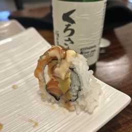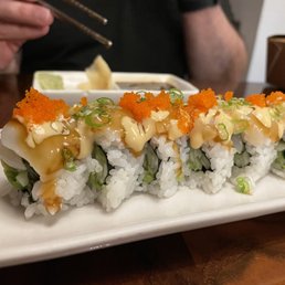 First time here, as we are trying out all the different sushi places in Chico. I had never heard of or noticed this place, but the yelp reviews were great, so we went. Tables were full but there was space at the bar so we were immediately seated. We ordered the Elm roll to split, and it was amazing! They served miso soup, on the house, which was nice. Staff were all attentive, and service from the waitress was quick.
